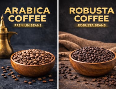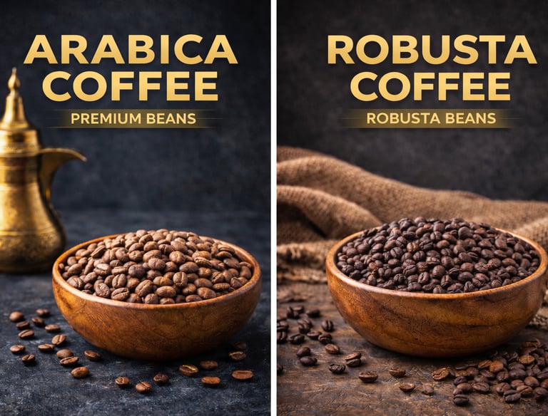 Premium Arabica and Robusta coffee beans, with Arabica sourced seasonally during peak harvest periods, while Robusta is supplied year-round to meet global demand